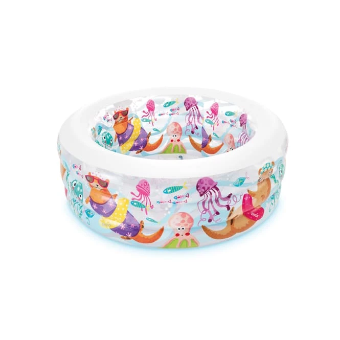 Dieses tolle Planschbecken mit lustigen Motiven aus dem Meer von Intex begeistert die kleinen Wasserratten ganz besonders. Mit den lustigen Motiven, wie z.B. einem großen Wal, bunten Fischen oder niedlichen Seesternen, haben die Kleinen viel zu entdecken und wollen garantiert nicht mehr aus dem Planschbecken raus. Mit einer Wasserkapazität von ca. 360 Ltr. bei einer Füllhöhe von ca. 41 cm ist ein riesiger Spielspaß vorprogrammiert und die Abkühlung sicher.