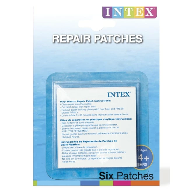Das Intex Pool-Reparatur-Set besteht aus 6 selbstklebenden Reparaturflicken in der Größe 7 x 7 cm. Einfach die undichte Stelle reinigen, den Flicken zurecht schneiden, aufbringen und nach 30 min. Wartezeit kann der Artikel wieder aufgeblasen und verwendet werden. Die Flicken sind für alle Aufblassartikel geeignet, egal ob Luftmatratze, Schwimmtier oder für Ihren Pool.