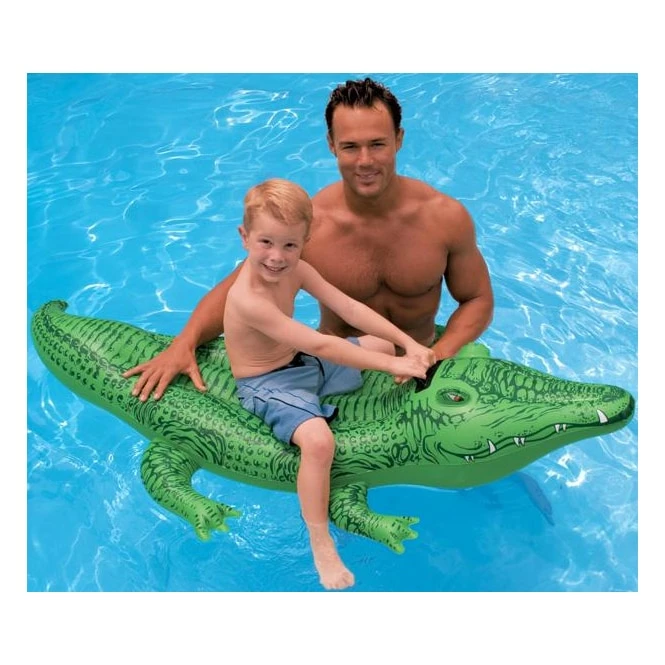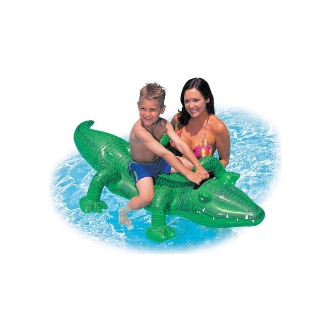Auf dem breiten Rücken des aufblasbaren Krokodils kann man es sich so richtig bequem machen! Der Griff sorgt für einen guten Halt.