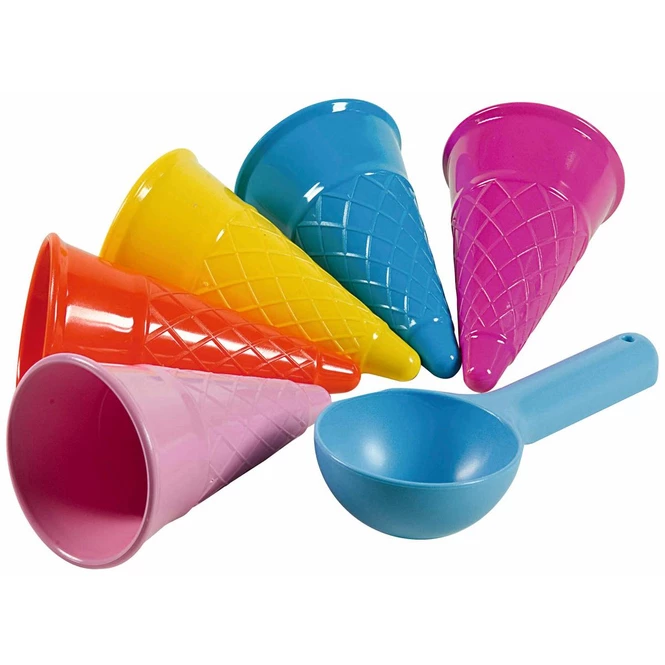 Mit den Androni Eiswaffel-Sandformen geht das ratzfatz. Sie dürfen bei keinem Strand- oder Spielplatzbesuch fehlen. Das Set besteht aus fünf Waffeln und einem Löffel.