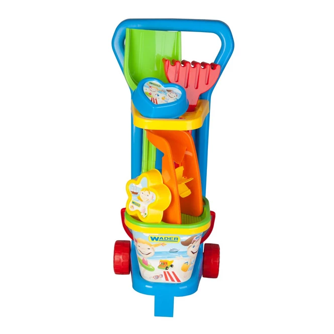 - Eimer, Siebaufsatz, 2 Förmchen, Schaufel, Rechen, kleine Sand-/ Wassermühle